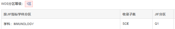 中科院分區:大類學科-醫學為2區,小類學科-免疫學為2區